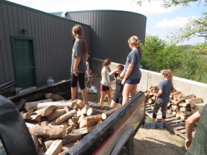 Last week, our grandchildren were in a crew of middle-school students from our church to do fall clean-up work at a beautiful camp not far from here. Sigh…seeing photos like this does my old heart good–no technology here, just plain old muscle-building.